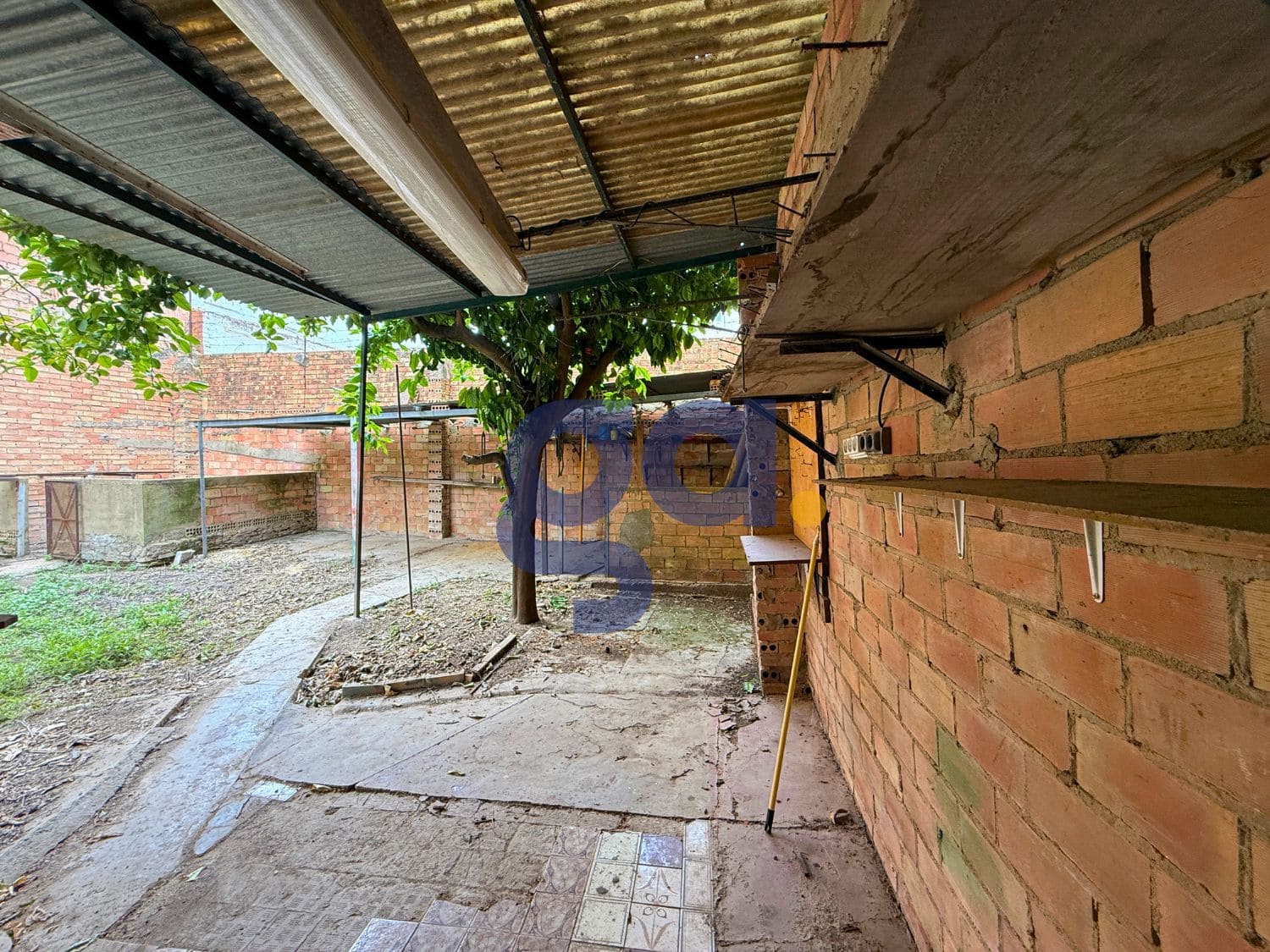 El solar cuenta con una primera zona cubierta de 81 m², ideal como cochera, zona de reuniones o espacio polivalente. Dispone, además, de un baño, lo que facilita su uso sin necesidad de acceder a la vivienda principal.